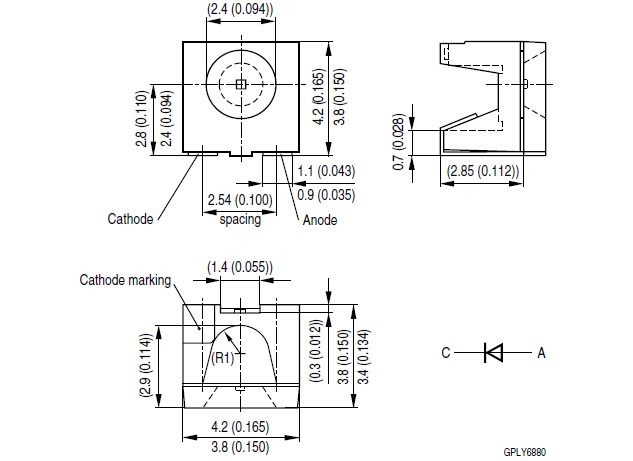 LWA673-Q1R2 absolute maximum ratings: (1)Operating temperature range, Top: – 40 to + 100℃; (2)Storage temperature range, Tstg: – 40 to + 100℃; (3)Junction temperature, Tj: + 110℃; (4)Forward current (TA=25℃), IF: 20mA; (5)Surge current, t = 10 μs, D = 0.005, TA=25℃, IFM: 200mA; (6)Reverse voltage (TA=25℃), VR: 5V; (7)Power consumption (TA=25℃), Ptot: 80mW; (8)Thermal resistance: Junction/ ambient, Rth JA: 430K/W; Junction/ solder point, Rth JS: 200K/W.